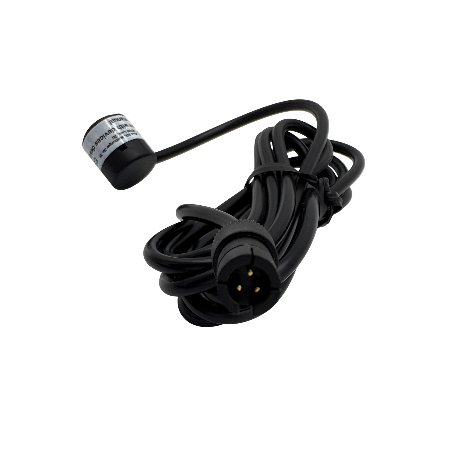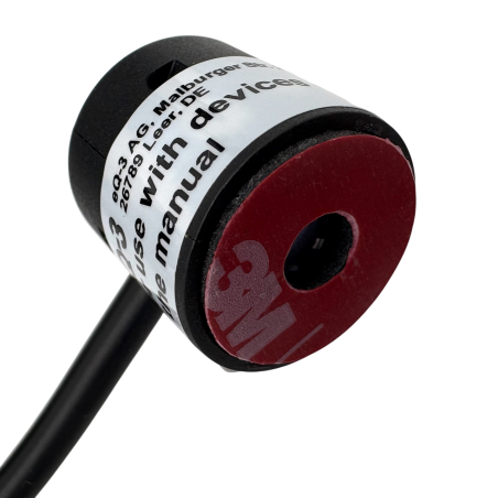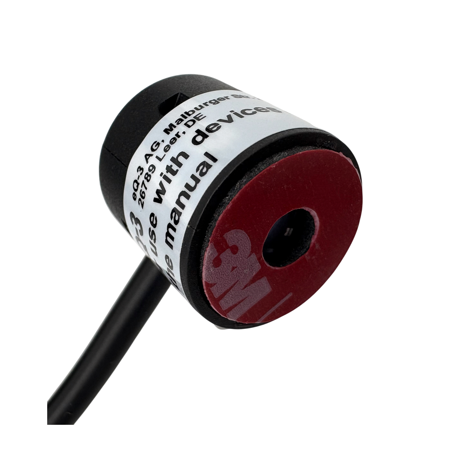 Der Sensor ist mit einem passenden, dreipoligen Stecker für den Anschluss an der Flanschbuchse des Emonio P3 ausgestattet. Bitte beachten Sie, dass die Flanschbuchse extra bestellt werden muss. Im Emonio P3 muss die Erweiterung "X1" oder "X4" installiert sein, damit die Flanschbuchse intern angeschlossen werden kann.