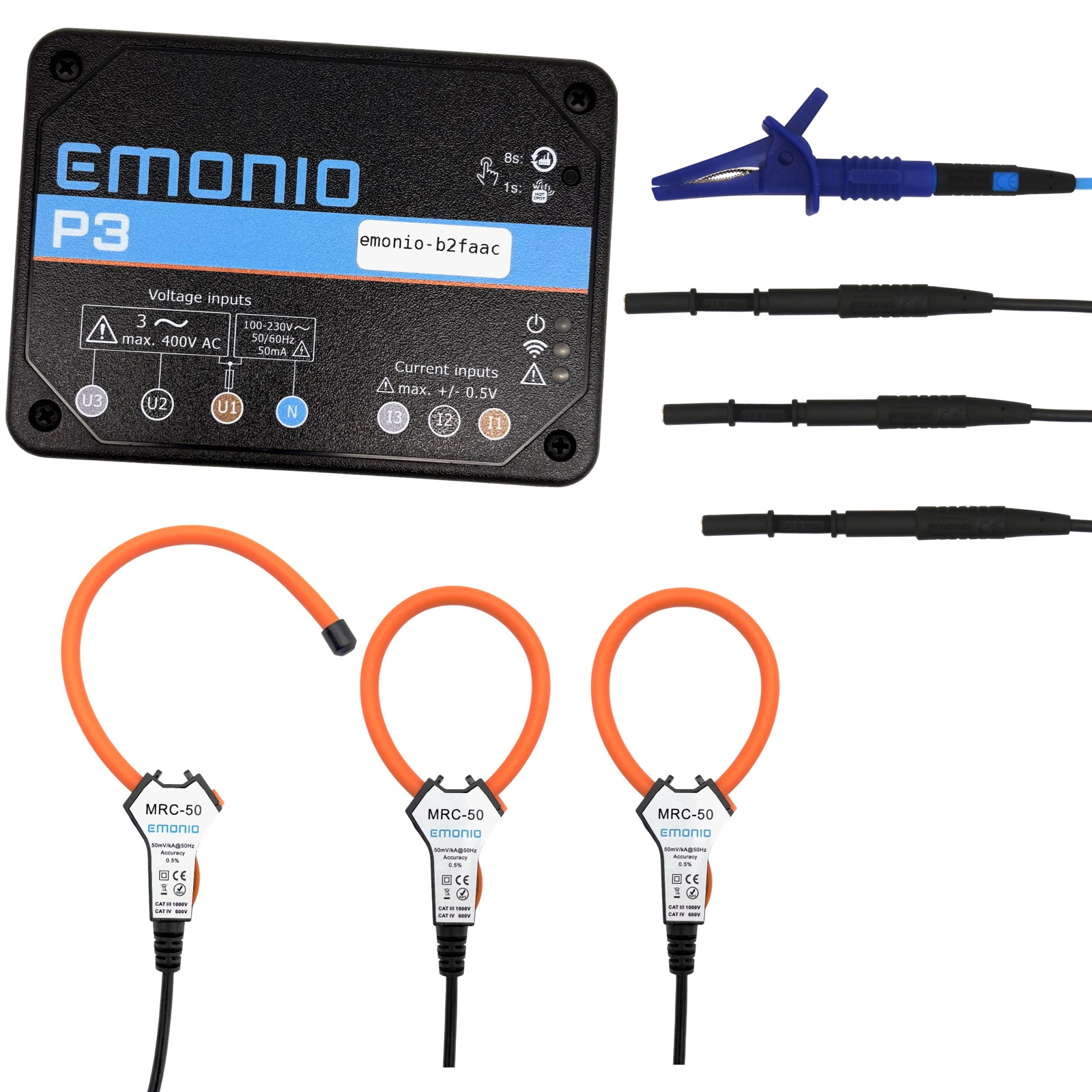 3x MRC50 Rogowski coil with 50mm inner diameter, 50mV/kA, 0.5% accuracy