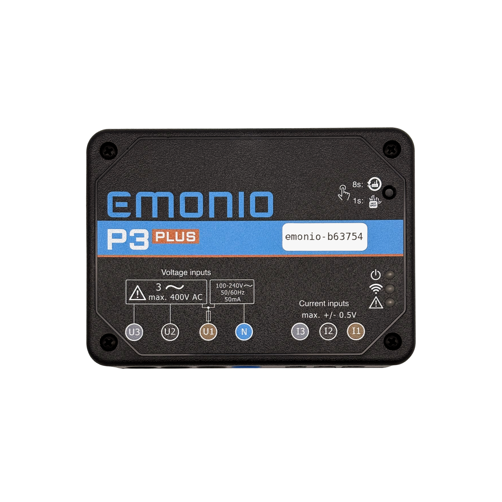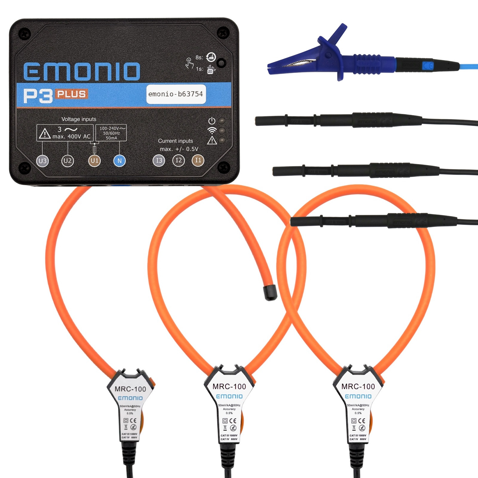 Emonio P3plus energy meter with harmonic analysis, 32GB memory and complete accessories.