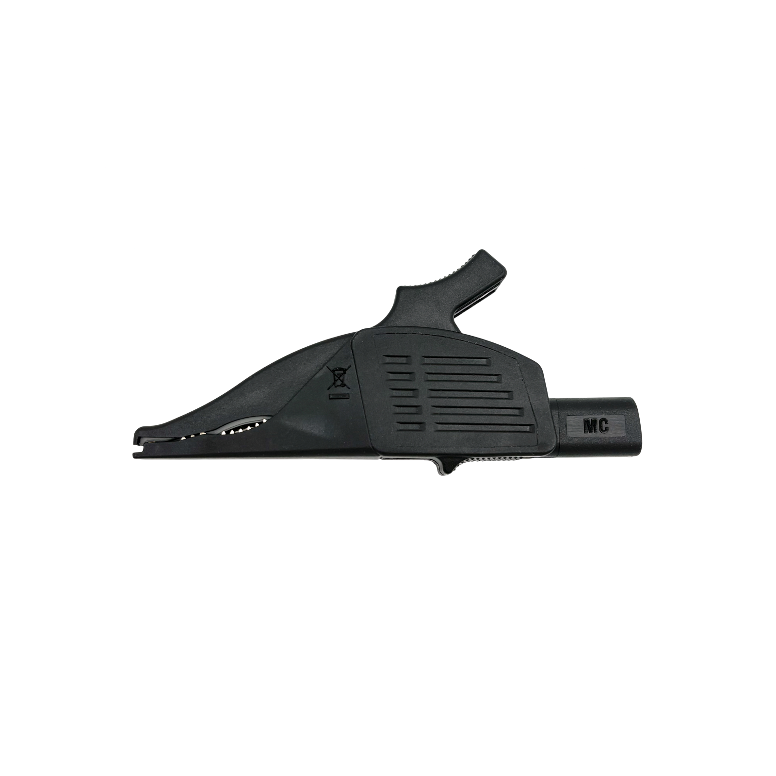 Pinza cocodrilo totalmente aislada para categoría de medición CAT III, 1000 V. Máx. 19 A. Apertura máxima: 39,5 mm. Color: negro.