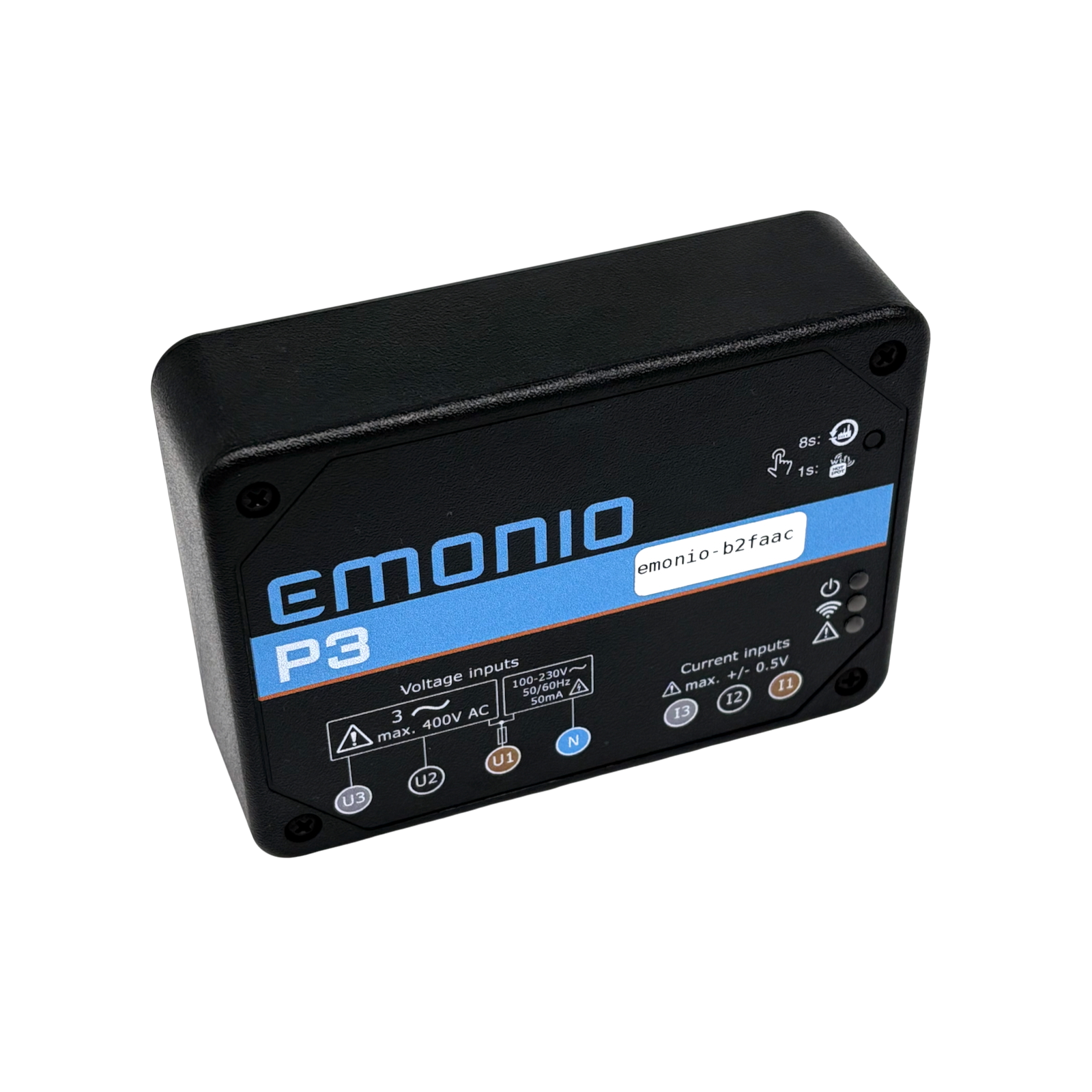 Emonio P3 Appareil de mesure d'énergie CAT III/300V avec processeur de signal ADE9000 et DSP, 32GB de mémoire. Produit de base sans accessoires.
